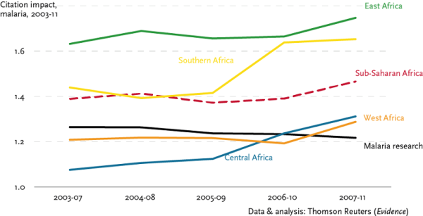 The report shows that the European share of world research in HIV/AIDS, TB and neglected infectious diseases is around one-third. Although European research output has grown, it has not kept pace with global research growth. Sub-Saharan Africa’s share is around one-tenth. The relative contribution of both regions to the global output of malaria research is larger.
