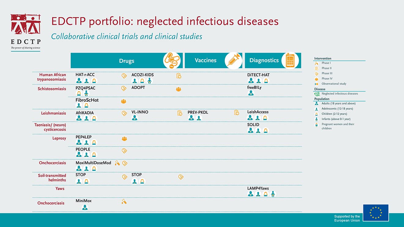 “Amidst competing priorities of diseases of epidemic potential, EDCTP maintains commitment to neglected infectious diseases and populations. We are greatly encouraged by the growing and promising studies evaluating new medicines and combinations, as well as the research on optimising and managing co-endemic infections involving NTD’s and related capacity building.”